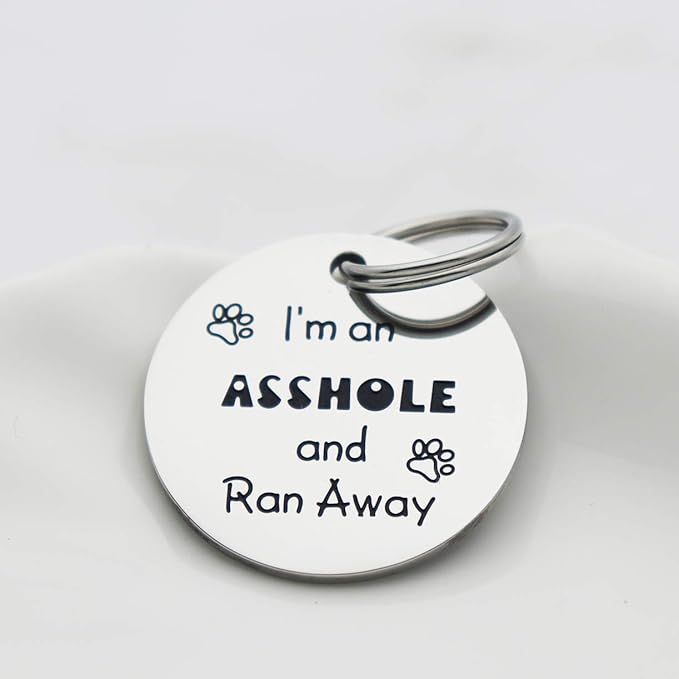 Funny Pet Tag Stainless Steel Pet Tags Dog Tag for Collar Puppy Tag (I'm an Asshole and Ran Away)