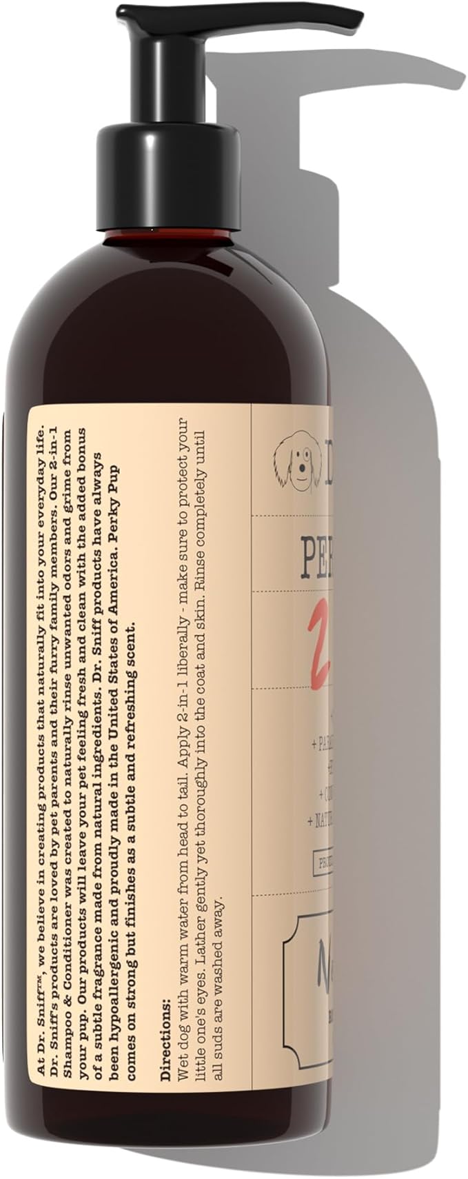 - CLEAN & SAFE INGREDIENTS: Dr. Sniff Fresh Pup 2-in-1 Pet Shampoo & Conditioner is pet pH balanced, gluten-free, cruelty-free, paraben free, sulphate free and consciously sourced to be a safe and reliable option for your companion.