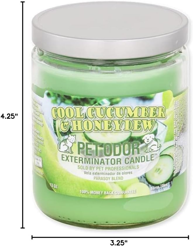Pet Odor Exterminator Candle 13oz jar, Cool Cucumber & Honeydew