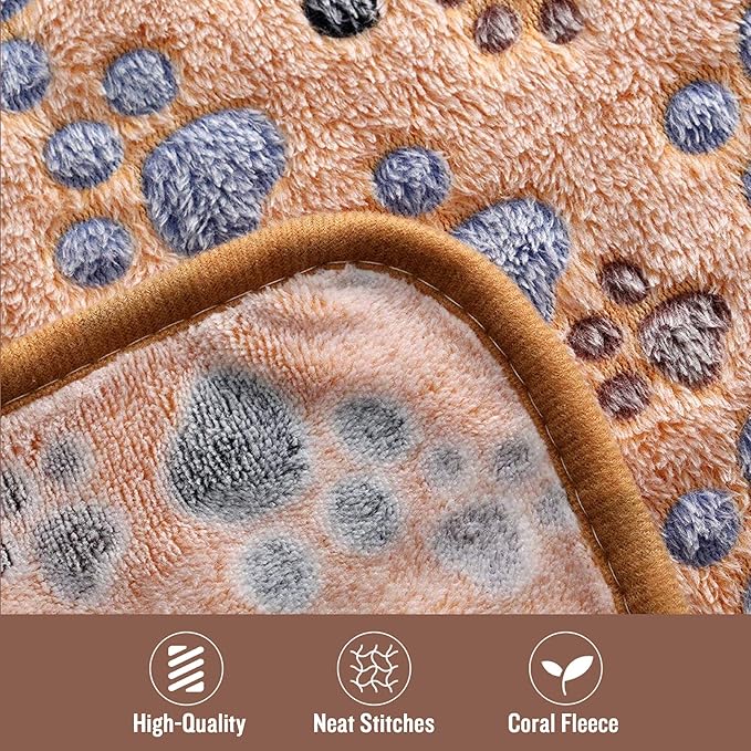 1 Pack 3 Blankets Super Soft Fluffy Premium Fleece Pet Blanket Flannel Throw for Dog Puppy Cat Paw Brown/Pink/White Medium(30x20 inch)