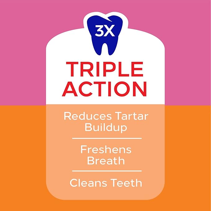 - PEDIGREE DENTASTIX Triple Action acts as a dog breath freshener that works to clean teeth and freshen breath, and has a clinically proven texture that reduces plaque and tartar buildup