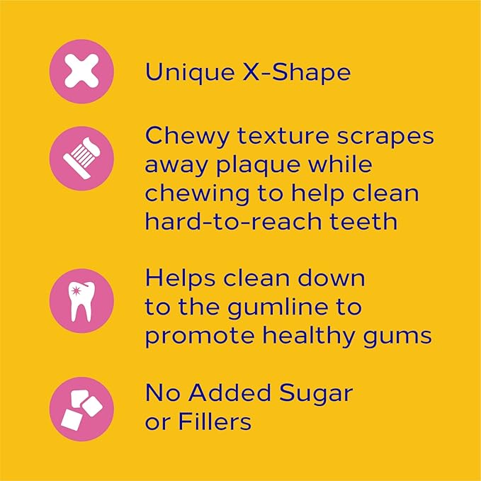 - Our dental treat sticks have a unique X-shape design and are specially designed dog treats for large breed dogs, weighing over 40+ lbs.