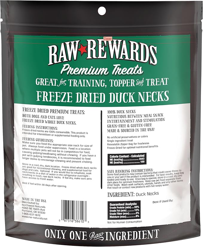 Northwest Naturals Raw Rewards Freeze-Dried Duck Neck Treats for Dogs and Cats - Whole Neck - Healthy, 1 Ingredient, Human Grade Pet Food, All Natural - 5 Oz