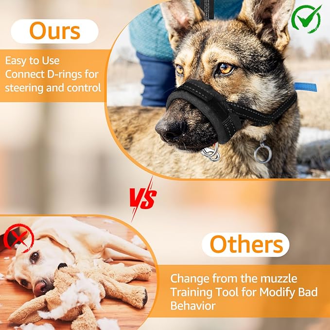 - Reflective for Night Use --- With reflective stitching on straps of the dog mouth cover, dogs can be noticed even in darkness environment, keeps dog safe when walking in night