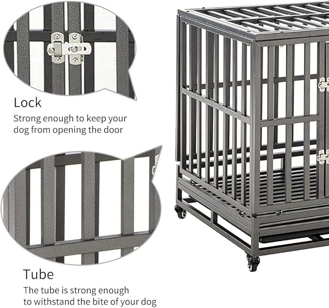 KELIXU 38” Heavy Duty Dog Crate Large Dog Cage Metal Dog Kennels and Crates for Large Dogs Indoor Outdoor with Locks, Lockable Wheels and Removable Tray, Easy to Install, Black