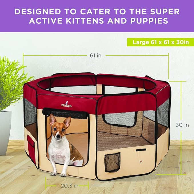 Zampa Pop Up Portable Large 61"x61"x30" Playpen for Dog and Cat, Foldable | Indoor/Outdoor Pen & Travel Pet Carrier + Carrying Case