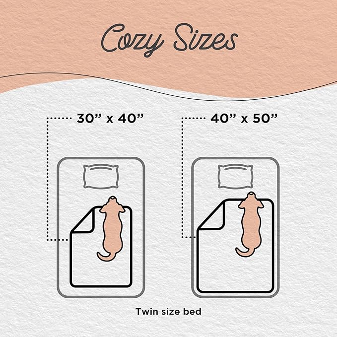 - Two cozy blanket sizes – 30 in by 40 in and 40 in by 50 in; the perfect amount of coverage, great for dogs, cats, and multiple pets