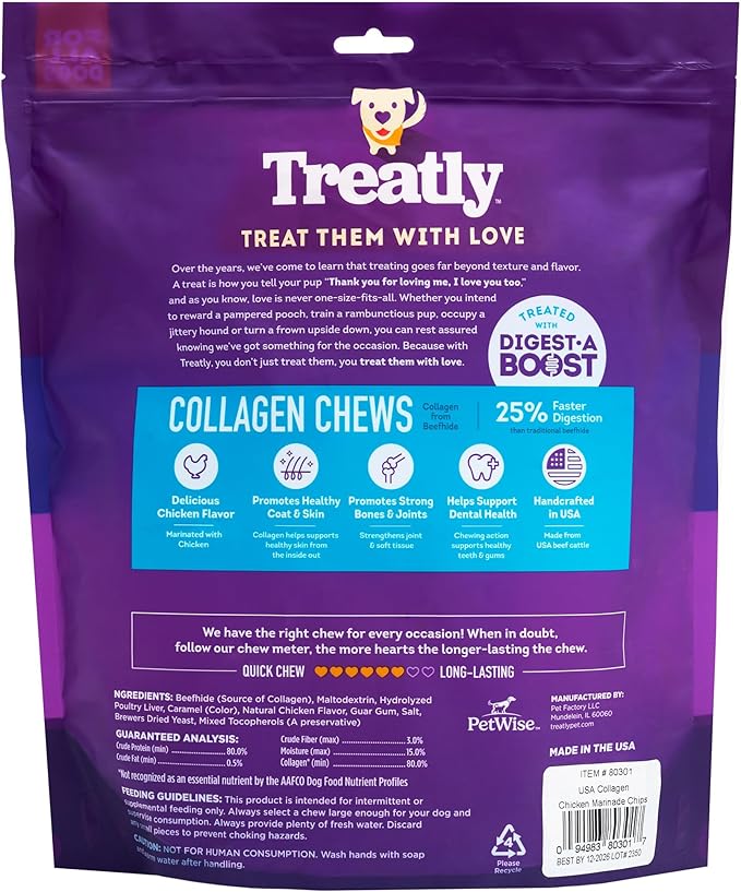 - ABOUT US: Treatly is the newest member of the PetWise, Inc. family of award-winning, industry-leading brands and manufacturer of USA-sourced beefhide bones and chews; our beefhide products come in a variety of shapes and sizes for every dog, including bones, rolls, and chips in various flavors
