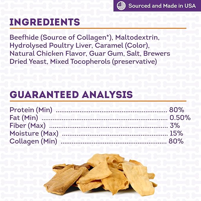 - MADE IN USA: Our collagen chews are made from the all-natural collagen layer of American-sourced beefhide; they are crafted and processed in the USA for maximum quality and safety, and contain no dangerous additives or preservatives