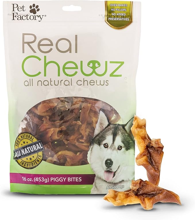 - 100% NATURAL: Real Chewz's piggy bites are all-natural, single-ingredient dog chews packed with protein for nourishment, and contain no preservatives, additives, or fillers; your dog will find these delicious and savory oven-baked chews hard to resist