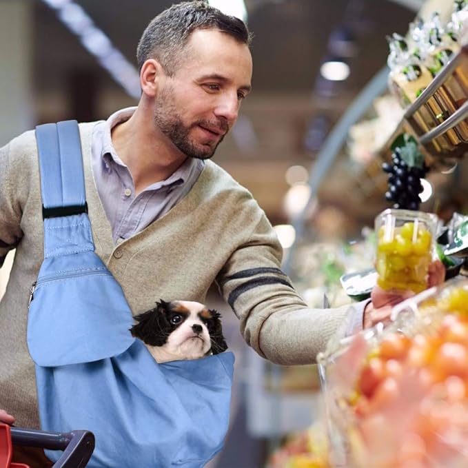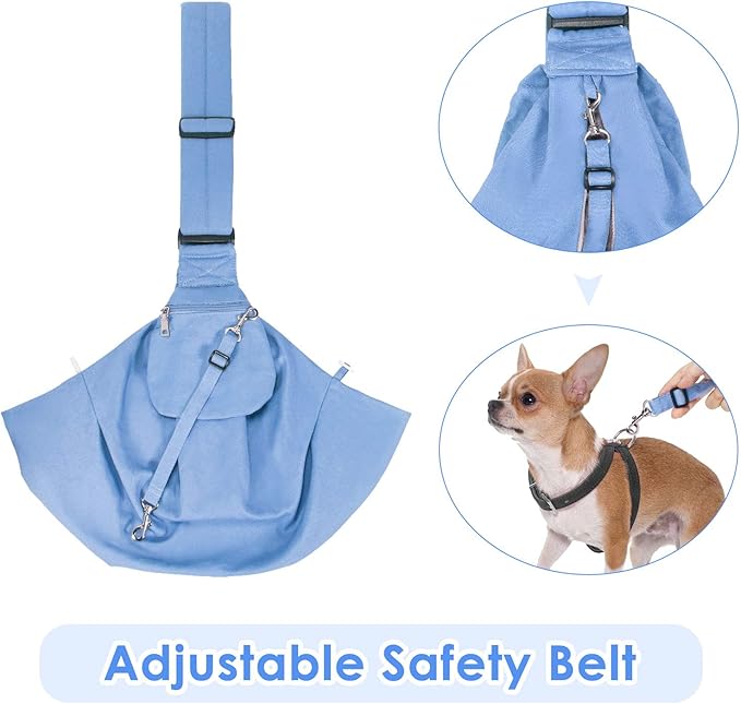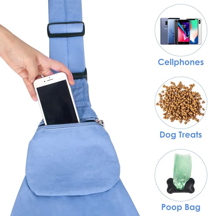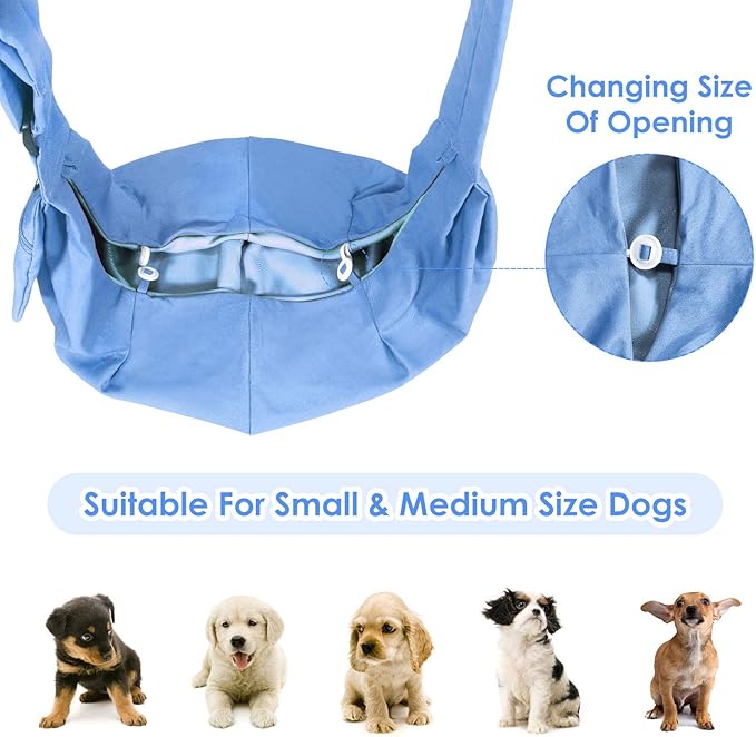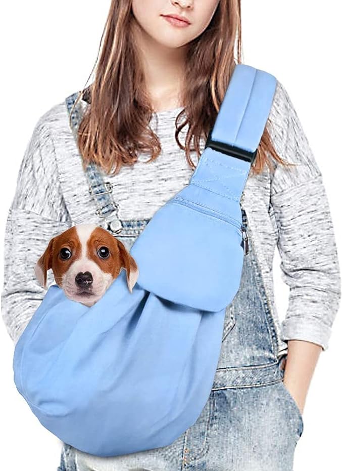 Lukovee Pet Sling, Hand Free Dog Sling Carrier Adjustable Padded Strap Tote Bag Breathable Cotton Shoulder Bag Front Pocket Safety Belt Carrying Small Dog Cat Puppy Machine Washable (Light Bule, M)