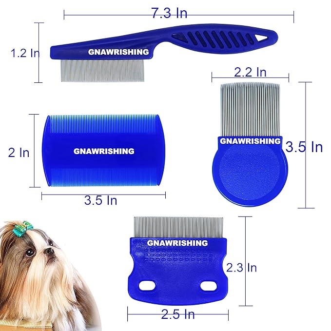 - [Package List] You will get total 4 different kinds of combs, use in different kinds of pets, such as dog, cat etc most of the house pets. Package List: 1Pcs stainless steel high strength teeth comb with strong plastic grip blue 7.08 * 1.18 in , 1Pcs double sides strong plastic comb 3.54 * 2.16 in , 1Pcs long stainless steel teeth comb 3.54 * 1.96 in , 1Pcs short stainless steel teeth comb 2.04 * 2.36 in