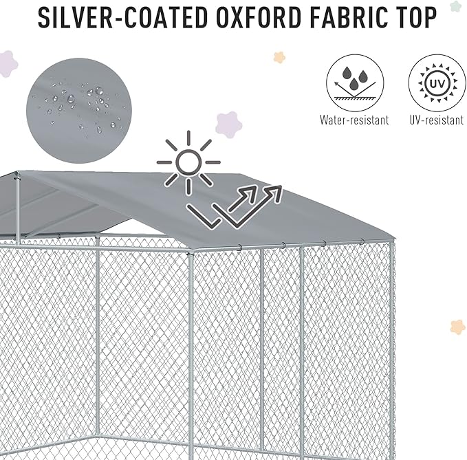 PawHut Large Dog Kennel Outside, Heavy Duty Dog Cage with Waterproof Cover, Outdoor Fence Dog Run with Galvanized Chain Link, Secure Lock, 9.8' x 9.8' x 7.7'