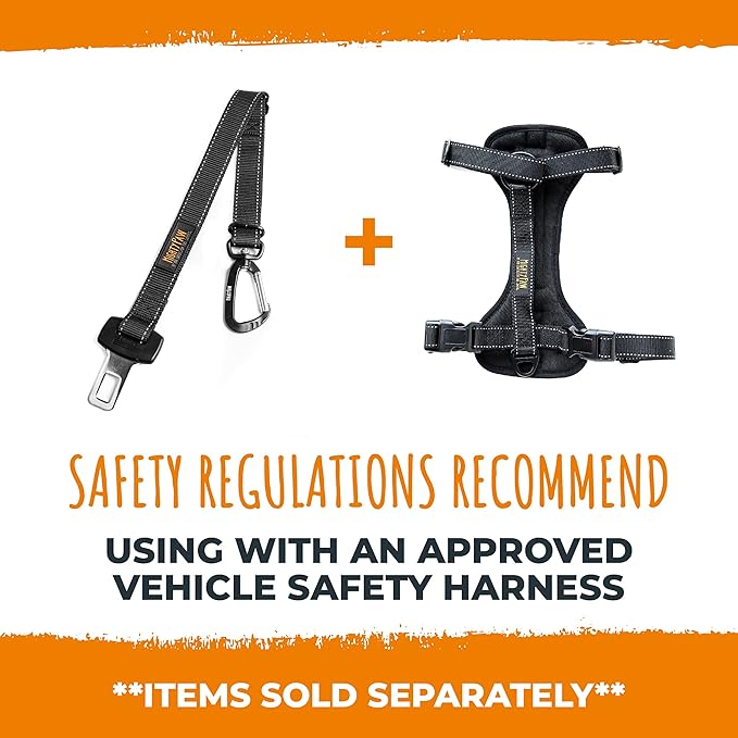 - SAFETY REGULATIONS COMPLIANCE: It's recommended that our seatbelt be used with an approved vehicle dog seat belt harness. Drive safe and keep your fur friend secure with our dog seatbelt and harness. Dog harness for car seatbelts for peace of mind!