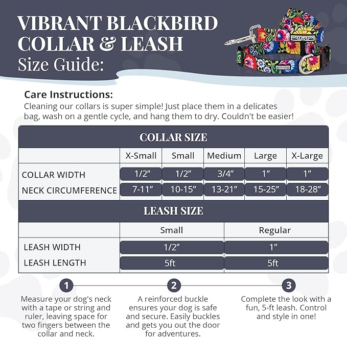 Lucky Love Dog - Easy Click Buckle Dog Collar with Leash Set Combo, Durable & Comfortable Collar for Male & Female Dogs, Pet Collar for Small to Large Dogs, Secure Fit - Blackbird Combo, X-Small