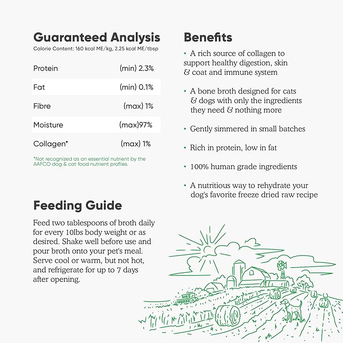 - A bone broth designed for cats & dogs with only the ingredients they need & nothing more