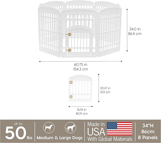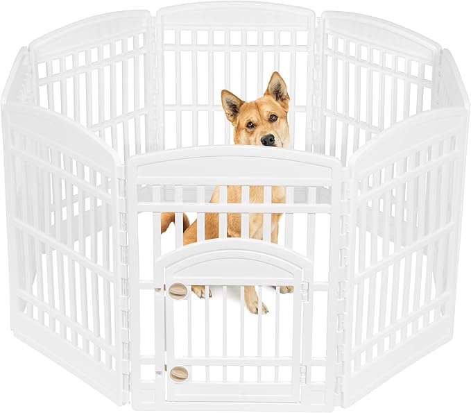 IRIS USA 34" 8-Panel Dog Playpen with Door, 63 x 63 x 35, Puppy Playpen, Dog Play Pen Indoors, Pet Fence, Medium Pets, White