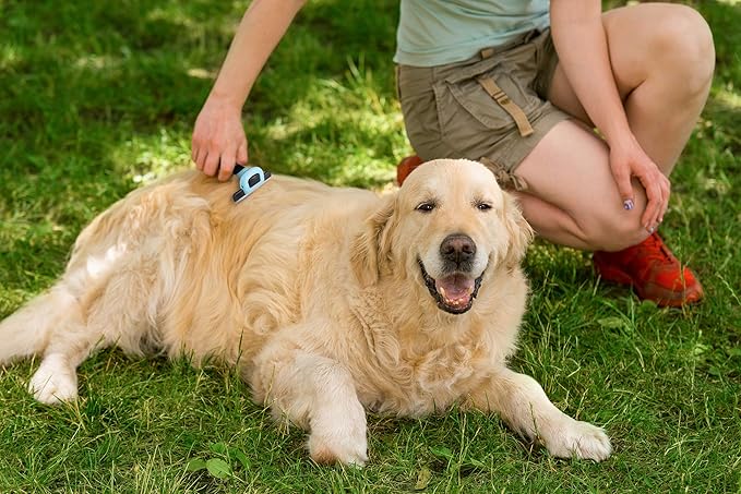 The pet grooming brush works wonders on my golden retriever’s thick coat. It removes loose fur effortlessly and my dog actually enjoys being brushed now.