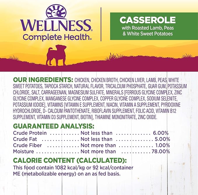 Wellness Petite Entrées Casserole with Roasted Lamb, Peas & White Sweet Potatoes, 3-Ounce Cup (Pack of 12)