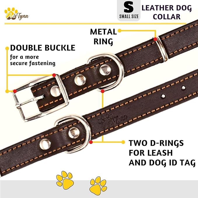 - TOP-RATED LEATHER DOG COLLAR - comfortable and featuring secure fastening with double buckle, two d-rings, and high-quality leather, the Adityna leather collar is a great option for all dogs including the ones with sensitive skin. Get only premium products for your beloved friend.