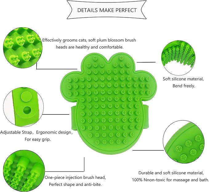 - NON-TOXIC Material: Durable and soft SILICONE material rather than traditional rubber,100% non-toxic for pet. Soft plum blossom brush head are healthy and comfortable, your pet friend will enjoyed combing and feel relaxed for a whole day.