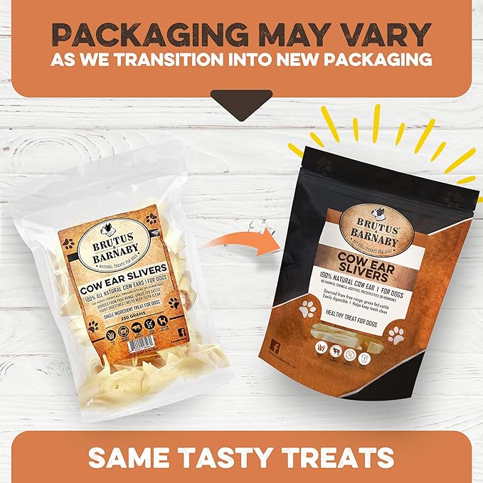 BRUTUS & BARNABY Cow Ears for Dogs; Ear Slivers are Great for Puppy Teething, Single Ingredient Beef Ear Slivers for Small to Medium Size Dogs (100grams)