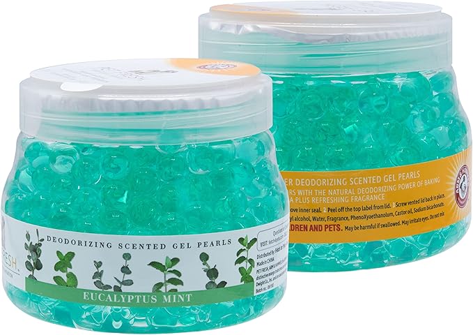 Arm & Hammer Pet Fresh Deodorizing Scented Gel Pearls | 12 oz Pet Odor Neutralizing Gel Beads with Arm & Hammer Baking Soda | Air Freshener Odor Eliminator in Eucalyptus Mint Scent