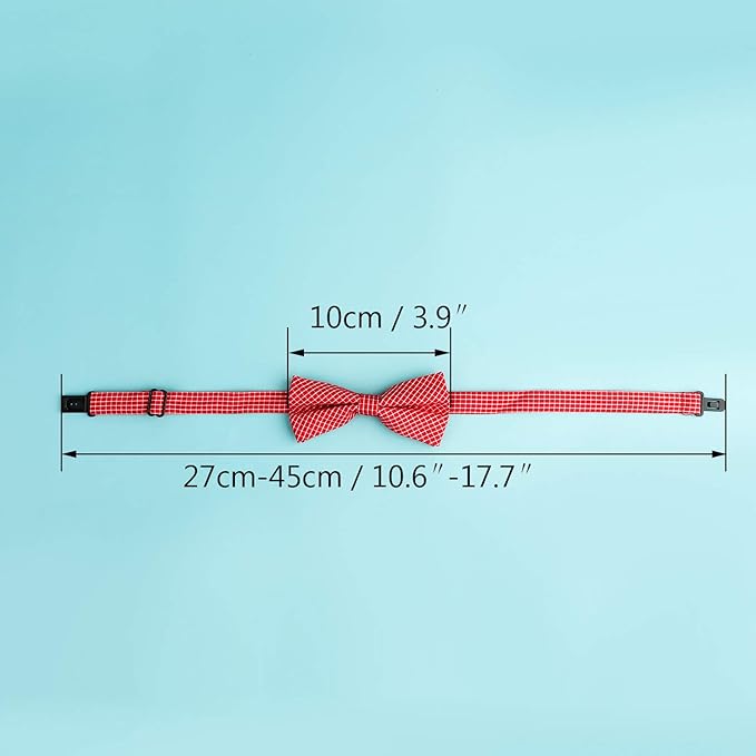 - ADJUSTABLE -- dog bowties fit pet neck size approx 9.6'' -16.5‘’; A 2-finger gap between dog neck and bowtie collar is recommended, for tie collar fabric is not stretchable.