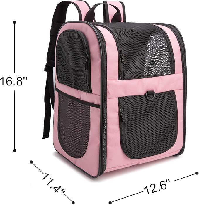 - LARGE SIZE-Designed for the maximum convenience and comfort for you and your pet while hiking, traveling, or taking your best friend to the vet, or going for a walk in the park. Measures approximately 11.4" x 12.6" x 16.8" (L x W x H),larger than most competitors in the market.Easily fits medium cats&dogs,even large sized cats and other medium pets.