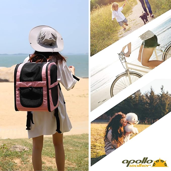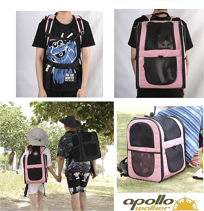 Apollo Walker Pet Carrier Backpack for Large/Small Cats and Dogs, Puppies, Safety Features and Cushion Back Support for Travel, Hiking, Outdoor Use (Pink)