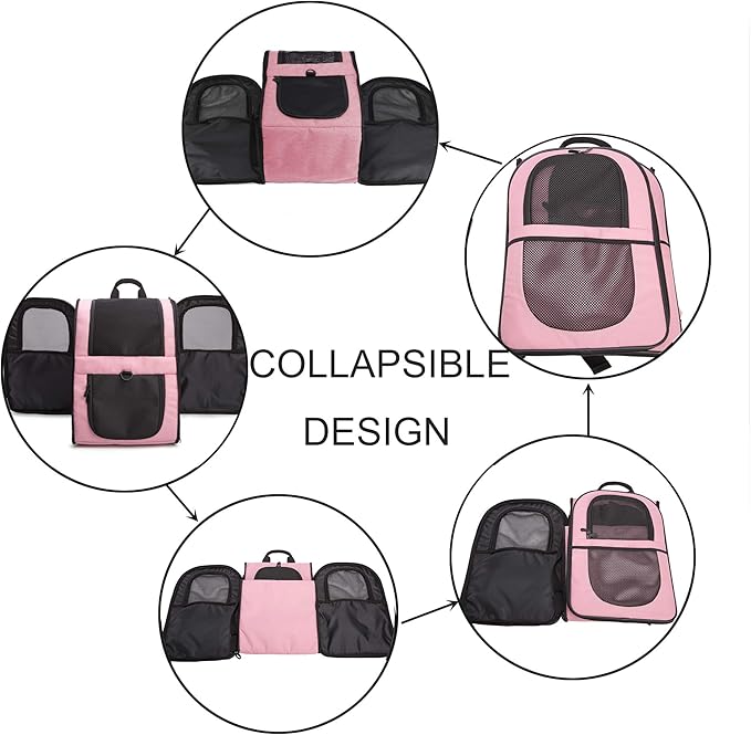 - BETTER CONSTUCTION-Well ventilated design for optimal airflow, two-way entry for easy access, top mesh window for more headroom and visibility, and thick, soft fleece bedding for your pet resting and relaxing. This backpack is firmly structured, providing ample room for your pet to move around.