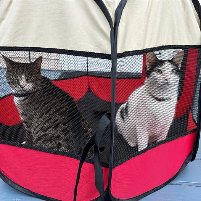 Mile High Life | Foldable Dog Playpen | Portable Dog Crate w Removable Shade Cover | Dog Kennel Indoor/Outdoor w Carry Case | Pen Tent for Dog/Cat/Rabbit(Red, Large (45"x45"x23"))