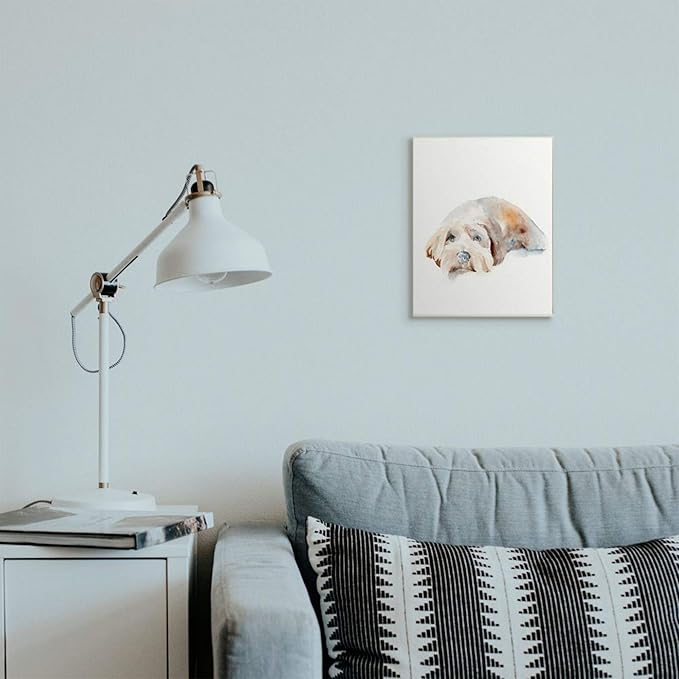 Stupell Industries Scruffy Dog Laying Down House Pet Painting Wood Art by Jennifer Paxton Parker Wall Plaque, 10 x 15