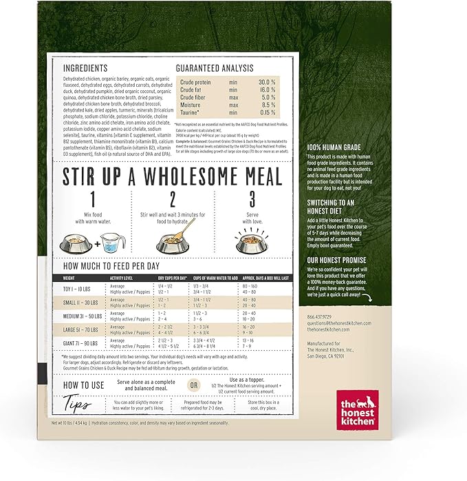 The Honest Kitchen Human Grade Dehydrated Gourmet Grains Dog Food - Chicken & Duck , 10 Pound Box