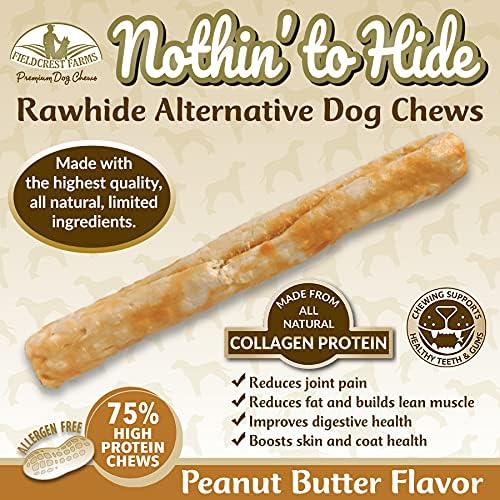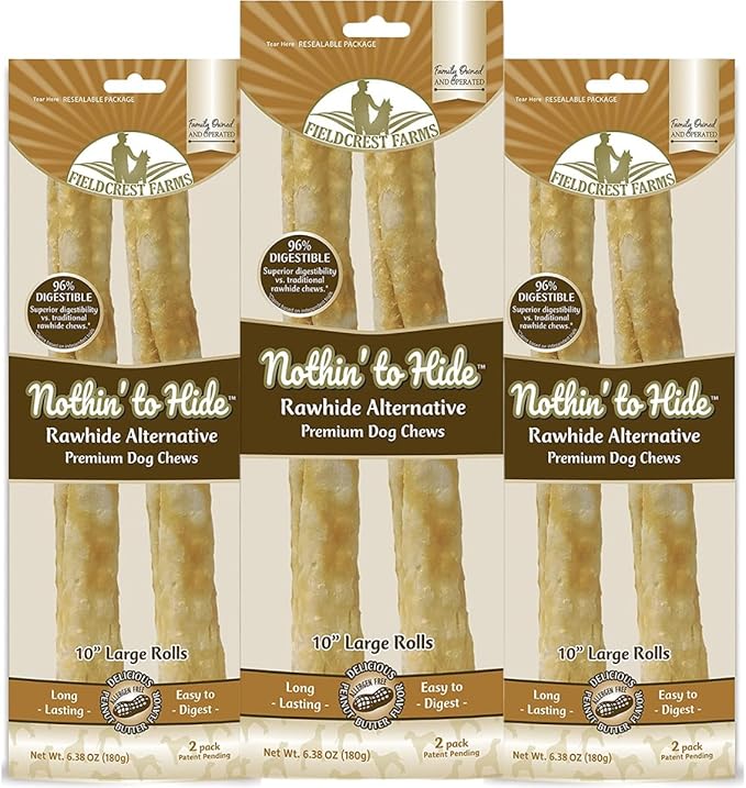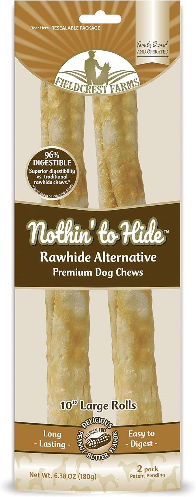 Fieldcrest Farms Nothing to Hide Natural Rawhide Alternative Large 10'' Rolls for Dogs - 3 Pack (6 Chews) Premium Grade Easily Digestible Chews - Great for Dental Health (Peanut Butter)