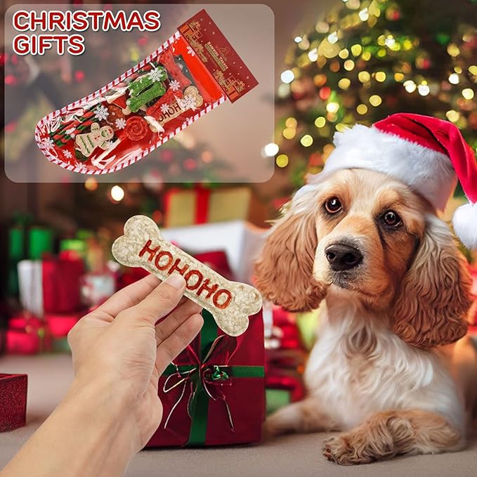 MON2SUN Christmas Dog Rawhide Treats Holiday 14Count Stocking for Small Dogs