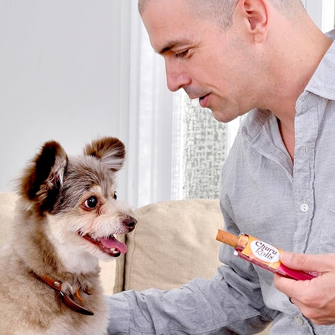 INABA Churu Rolls for Dogs, Soft & Chewy Baked Chicken Wrapped Filled Dog Treats with Vitamin E, 0.42 Ounces Each Stick, 64 Sticks (8 per Pack), Chicken with Cheese Recipe