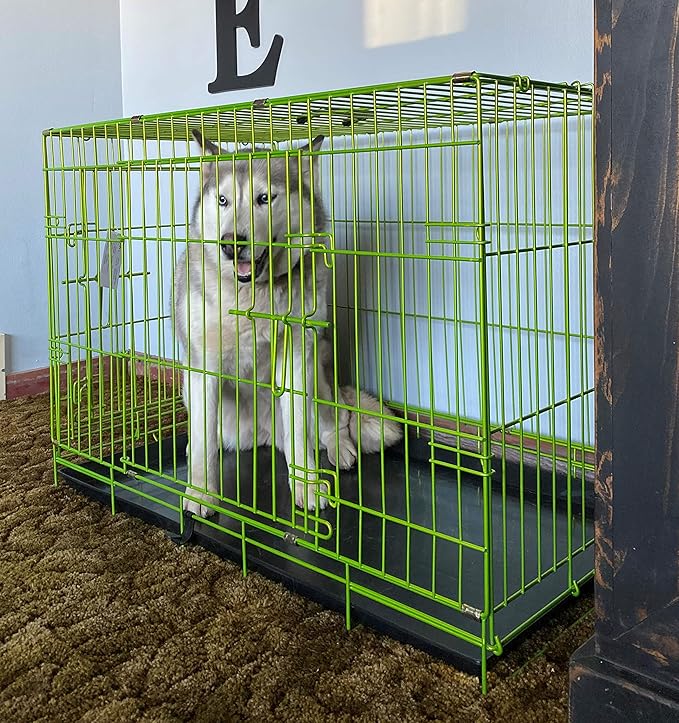 PET Expressions Luxury Colorful 48 Inch Foldable Dog Crate with 2 Doors | Free Training Ebook and Pet Calming Music | 3 Colors & 3
