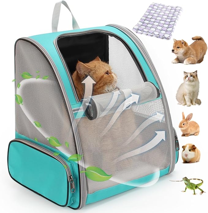 LOLLIMEOW Pet Carrier Backpack for Dogs and Cats,Puppies,Fully Ventilated Mesh,Airline Approved,Designed for Travel, Hiking, Walking & Outdoor Use (Mesh Green-M)