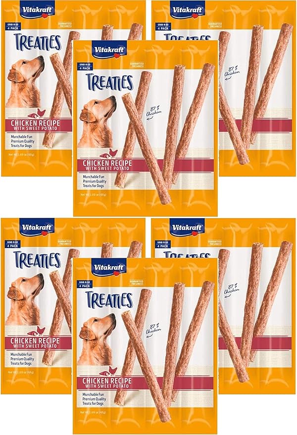 - Vitakraft's Treaties dog treat sticks are individually packaged to keep them fresh and moist on the go.