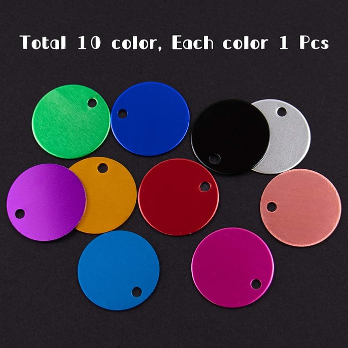 Framendino, Pet ID Tag Colorful Blank Round Double Sided Pets ID Tag Name Phone Number ID Tags Aluminum Charms