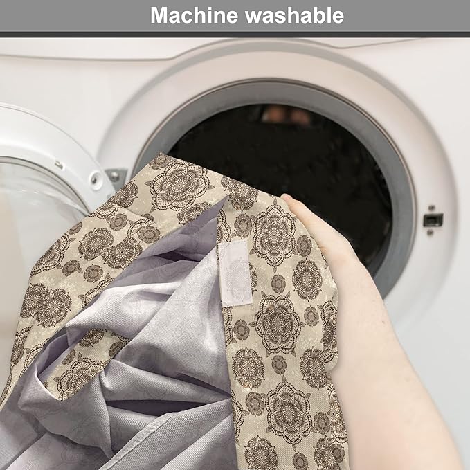 Lunarable Cream Dog Crate Cover, Vintage Eastern Inspired Design with Symmetrical Elements Abstract Flower Arrangement, Easy to Use Pet Kennel Cover for Medium Large Dogs, 36 Inch, Tan Brown