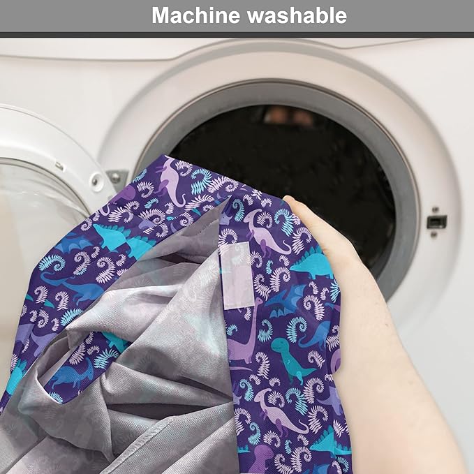 Lunarable Jurassic Dog Crate Cover, Abstract Cartoon Dinosaur Pattern Ferns Caricature Style Creatures Prehistoric, Easy to Use Pet Kennel Cover for Medium Large Dogs, 36 Inch, Blue Purple