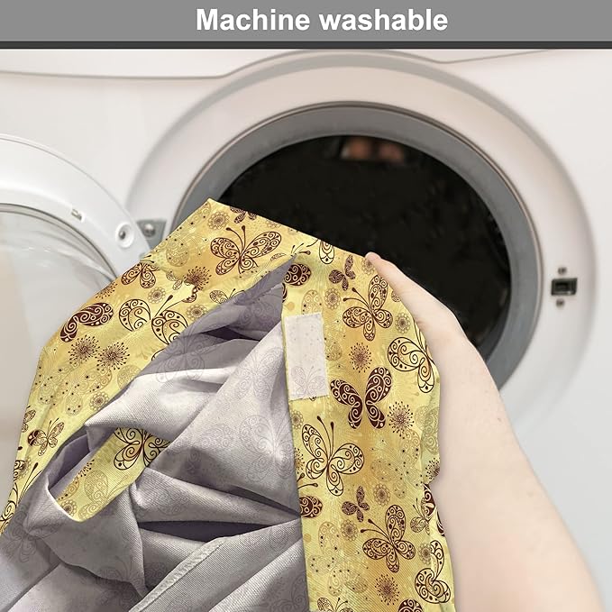 Lunarable Yellow and Brown Dog Crate Cover, Butterflies with Lace Style Ornament Spring Season Beauty Nature Print, Easy to Use Pet Kennel Cover for Medium Large Dogs, 36 Inch, Chestnut Brown