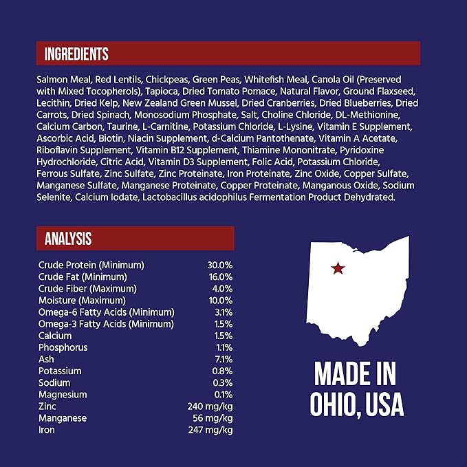 - NUTRIENT-DENSE FORMULATIONS - A holistic blend of Salmon with lots of omega-3 fatty acids, antioxidant-rich vegetables and probiotics for proper digestion Enriched with taurine