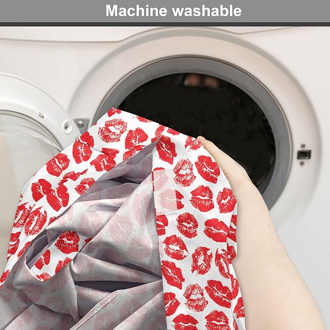 Lunarable Kiss Dog Crate Cover, Rhythmic Make up Red Luscious Lips Lipstick Imprint Illustration, Easy to Use Pet Kennel Cover for Medium Large Dogs, 36 Inch, Dark Pink and White