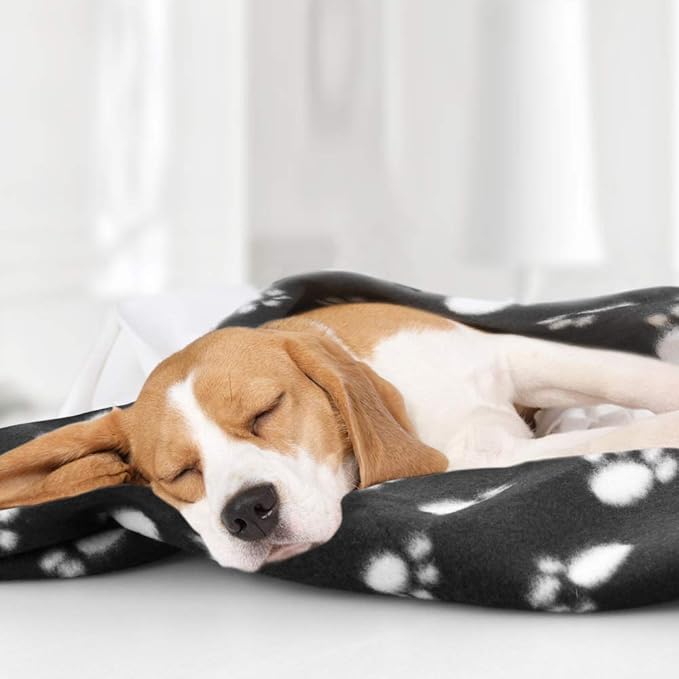 Comsmart Dog Blankets for Small Dogs, 6 Pack Puppy Blanket Cute Paw Print Pet Blanket for Dog, Puppy, Cat, Kitten, 39x31 inches, Black