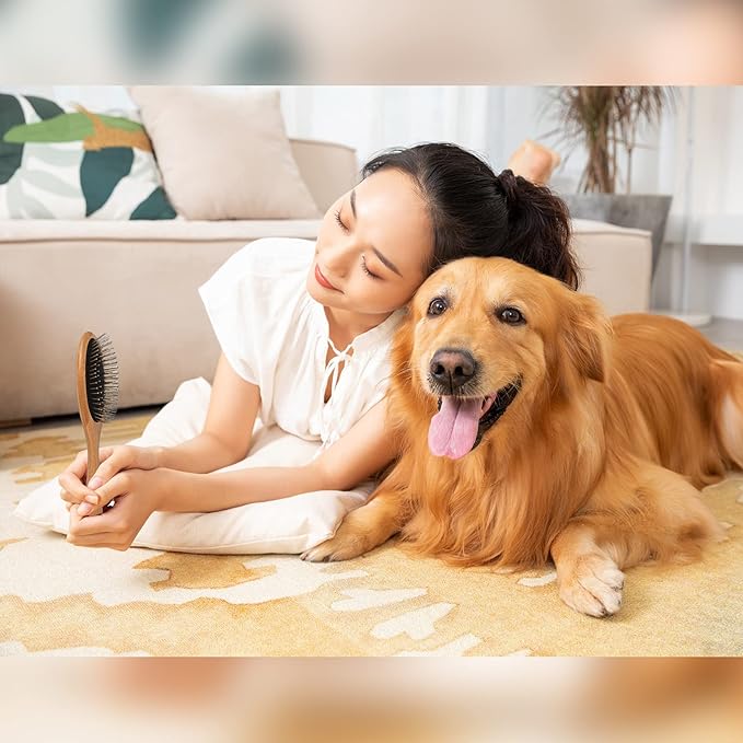 The pet grooming brush works wonders on my golden retriever’s thick coat. It removes loose fur effortlessly and my dog actually enjoys being brushed now.