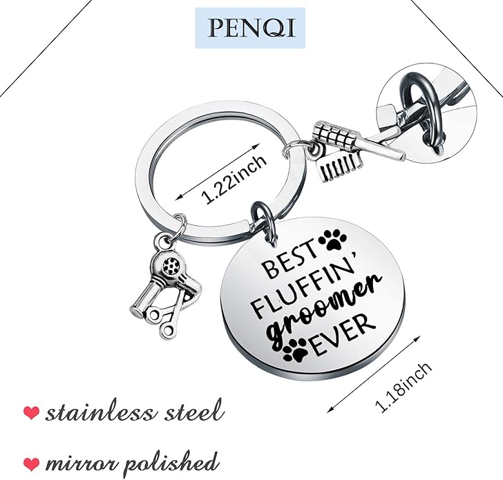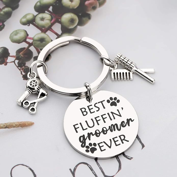 - ★Dog Groomer Jewelry★This pet groomer key chain with Hair dryer comb charm was engraved the words”Best Fluffin' Groomer Ever”,a inspired grooming gift for dog groomers.