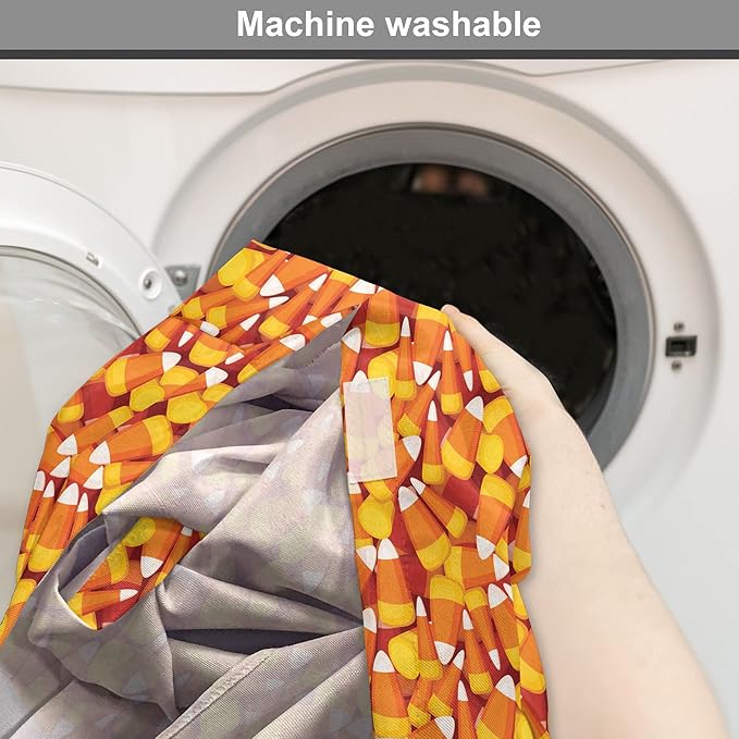 Lunarable Candy Corn Dog Crate Cover, Cartoon Style Pattern of Repetitive Nested Sweets Clutter, Easy to Use Pet Kennel Cover for Medium Large Dogs, 36 Inch, Marigold Vermilion